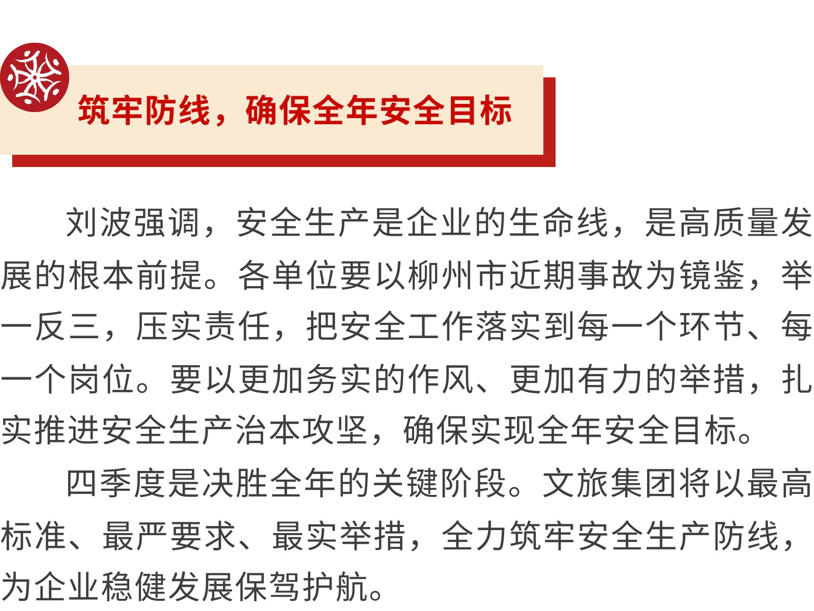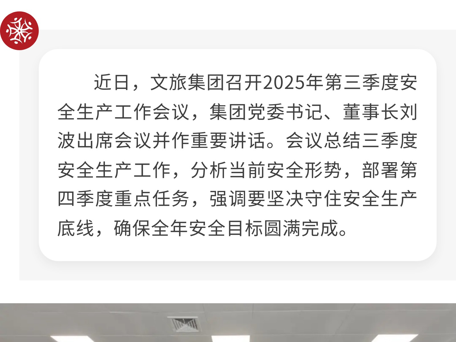 【壓實責任 筑牢防線】文旅集團全面部署2025年第四季度安全生產工作 發(fā)布時間:2025年10月24日 10時來源:本站原創(chuàng)瀏覽:157 人次
