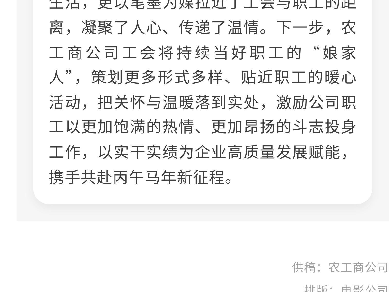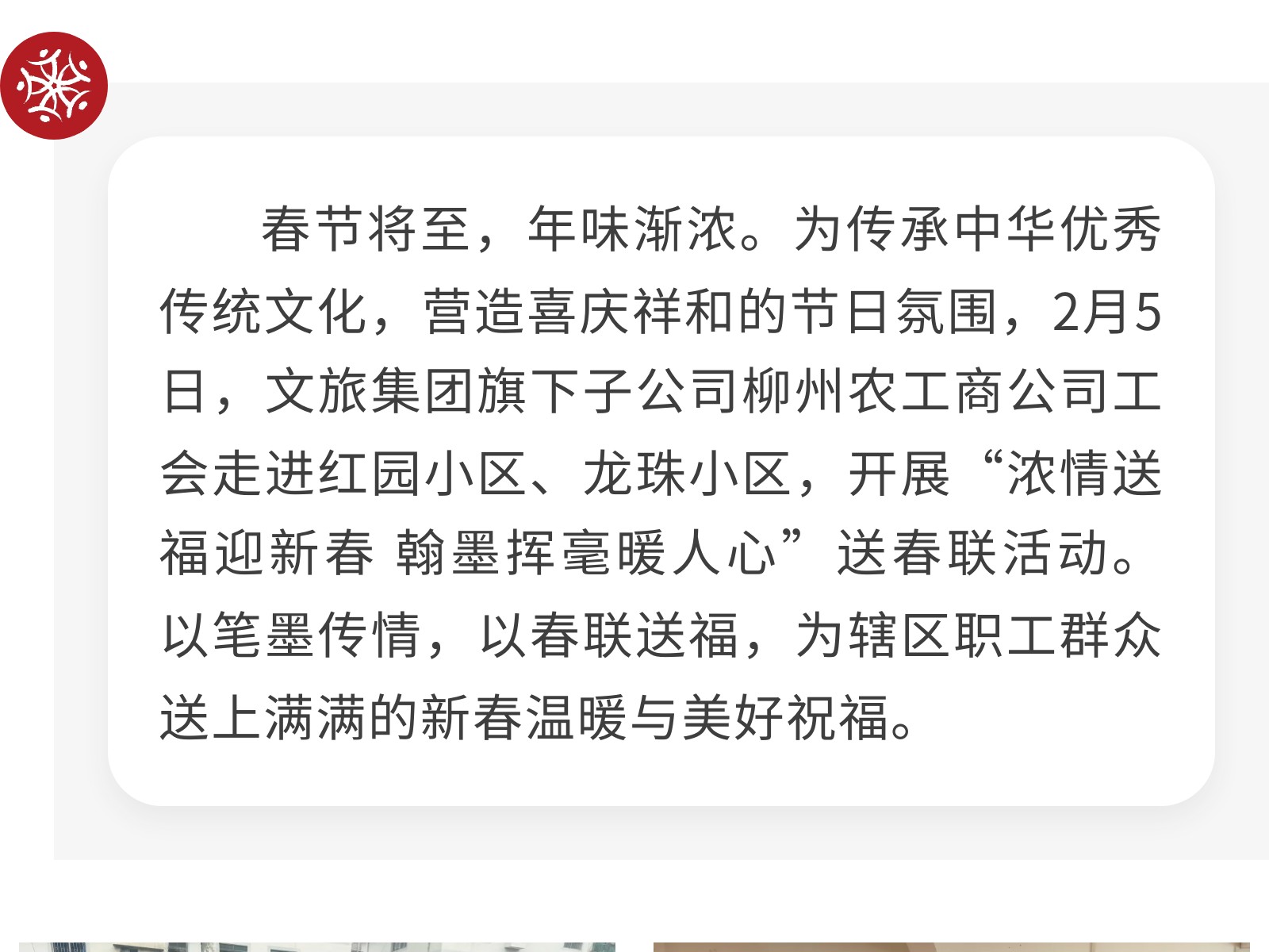 濃情送福迎新春 翰墨揮毫暖人心——柳州農(nóng)工商公司工會(huì)開展送春聯(lián)活動(dòng) 發(fā)布時(shí)間:2026年02月06日 12時(shí)來(lái)源:本站原創(chuàng)瀏覽:49 人次